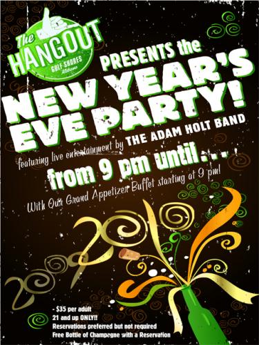 Ring in the New Year with The Hangout! Live entertainment provided by The Adam Holt Band. Party starts at 9 pm with our Grand Appetizer Buffet. Reservations are not required but are preferred. Each reservation receives a complimentary bottle of champagne and party favors. Adults are $35 at the door, persons 16 and under, $20 at the door.